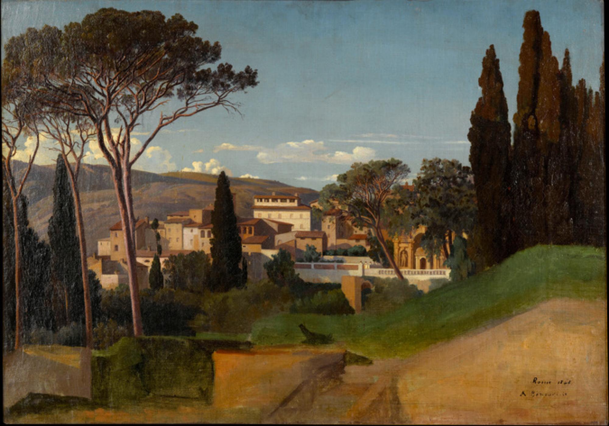 Photo : Achille Benouville, Vue d'une villa romaine, 1844, huile sur toile, © RMN-Grand Palais (Musée d’Orsay) / Adrien Didierjean. |