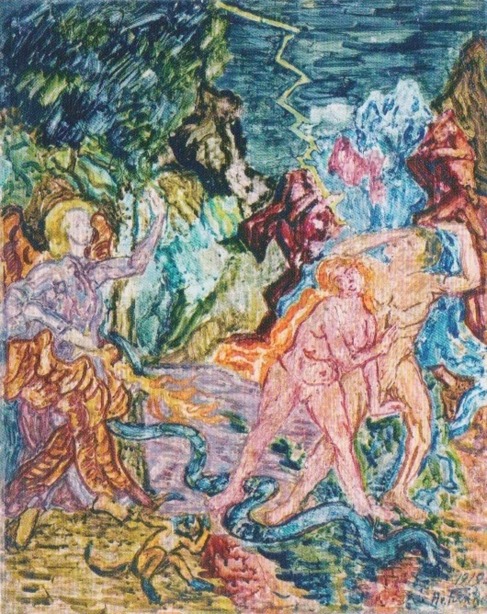 - Helene Funke, Expulsion II, technique mixte sur panneau, 1919, Kunstvermittlung Weinpolter, Wien.