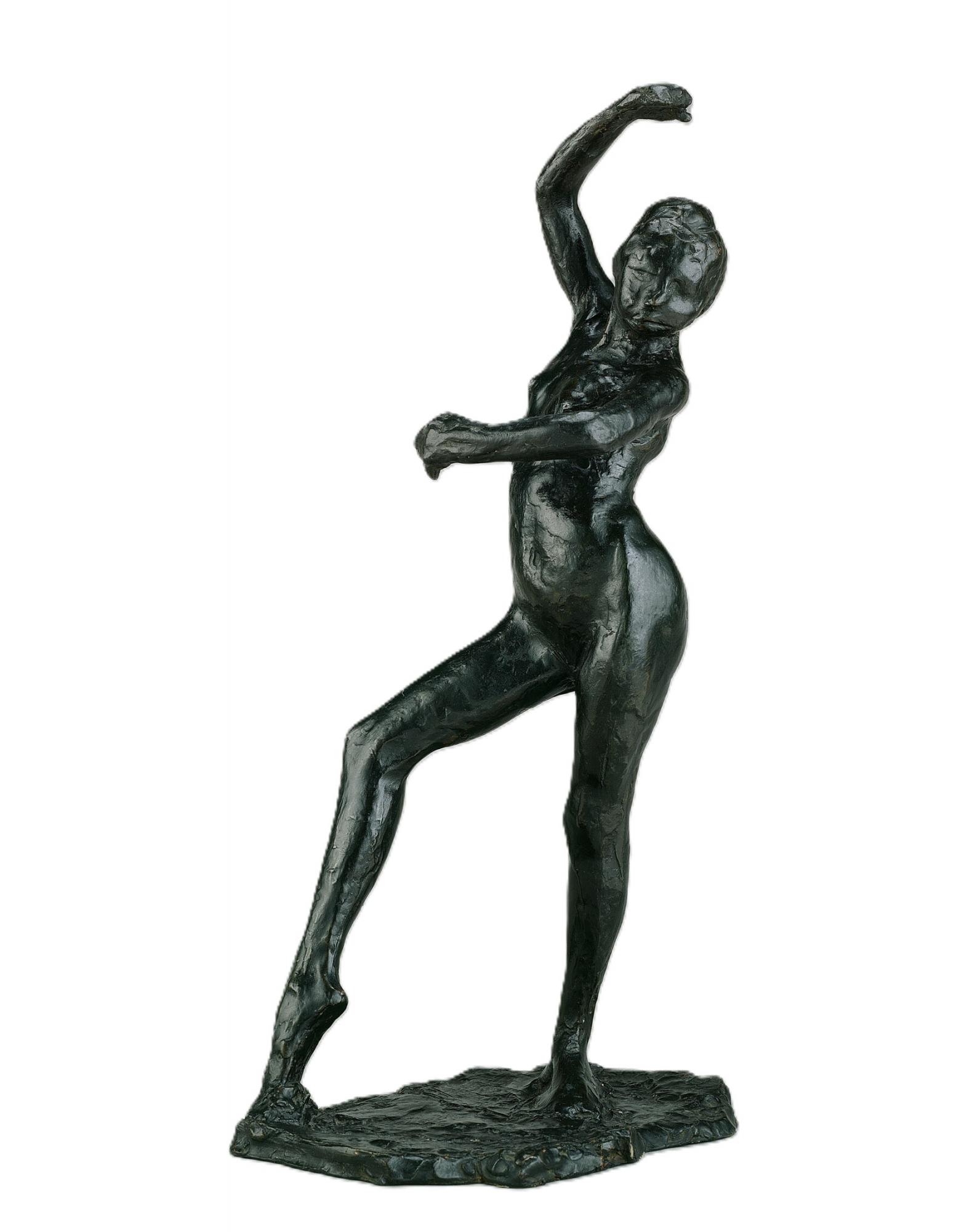 À la disparition d’Edgar Degas en 1917, on découvrit dans son atelier près de cent cinquante sculptures en cire ou en terre, conservées à l’abri des regards. De son vivant, ces œuvres demeurèrent pratiquement inconnues du public, à l’exception d’une seule : la Petite Danseuse de quatorze ans, présentée lors de l’exposition impressionniste de 1881. Cette figure, aux dimensions presque réelles, marqua les esprits par son caractère inédit. Degas l’avait parée de véritables cheveux, d’un tutu de tulle et de chaussons authentiques, soulignant un réalisme saisissant qui frôlait l’expérimentation scientifique. Exposée sous vitrine, comme un spécimen d’histoire naturelle, la sculpture révélait un Degas observateur du vivant, presque anthropologue. L’œuvre fit scandale : la critique de l’époque, choquée par ce mélange de naturalisme et de provocation, accusa l’artiste de représenter la jeune danseuse sous un jour animal ou vulgaire.