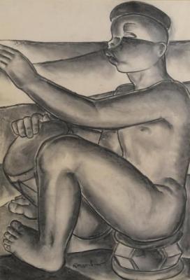 Auguste Mambour, Africain au djembe, fusain sur papier, crédit photographique: Crait+Müller. |