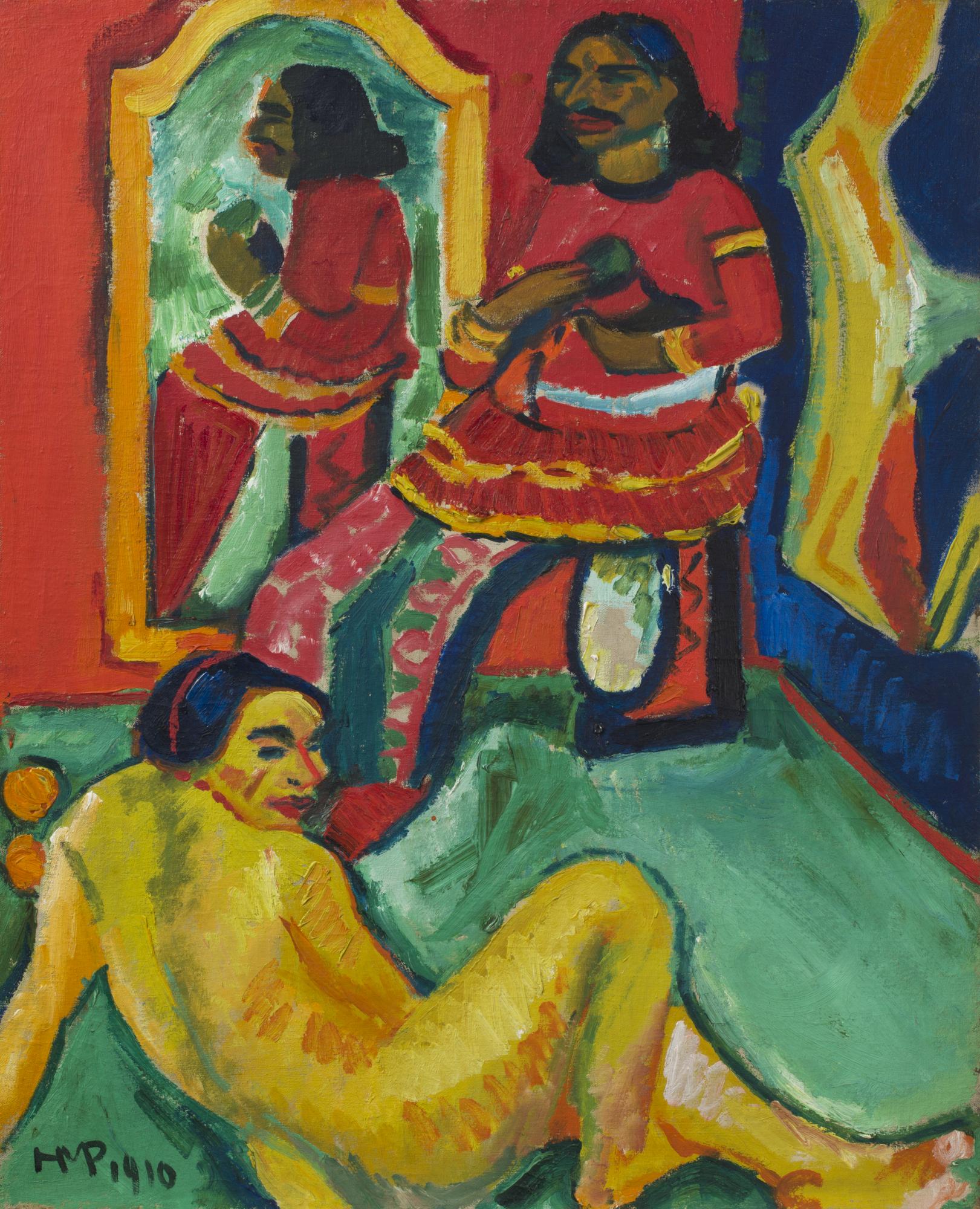 - Max Pechstein, Indien et femme (Lotte Kaprolat), huile sur toile, 1910, domaine public, Saint Louis Art Museum.