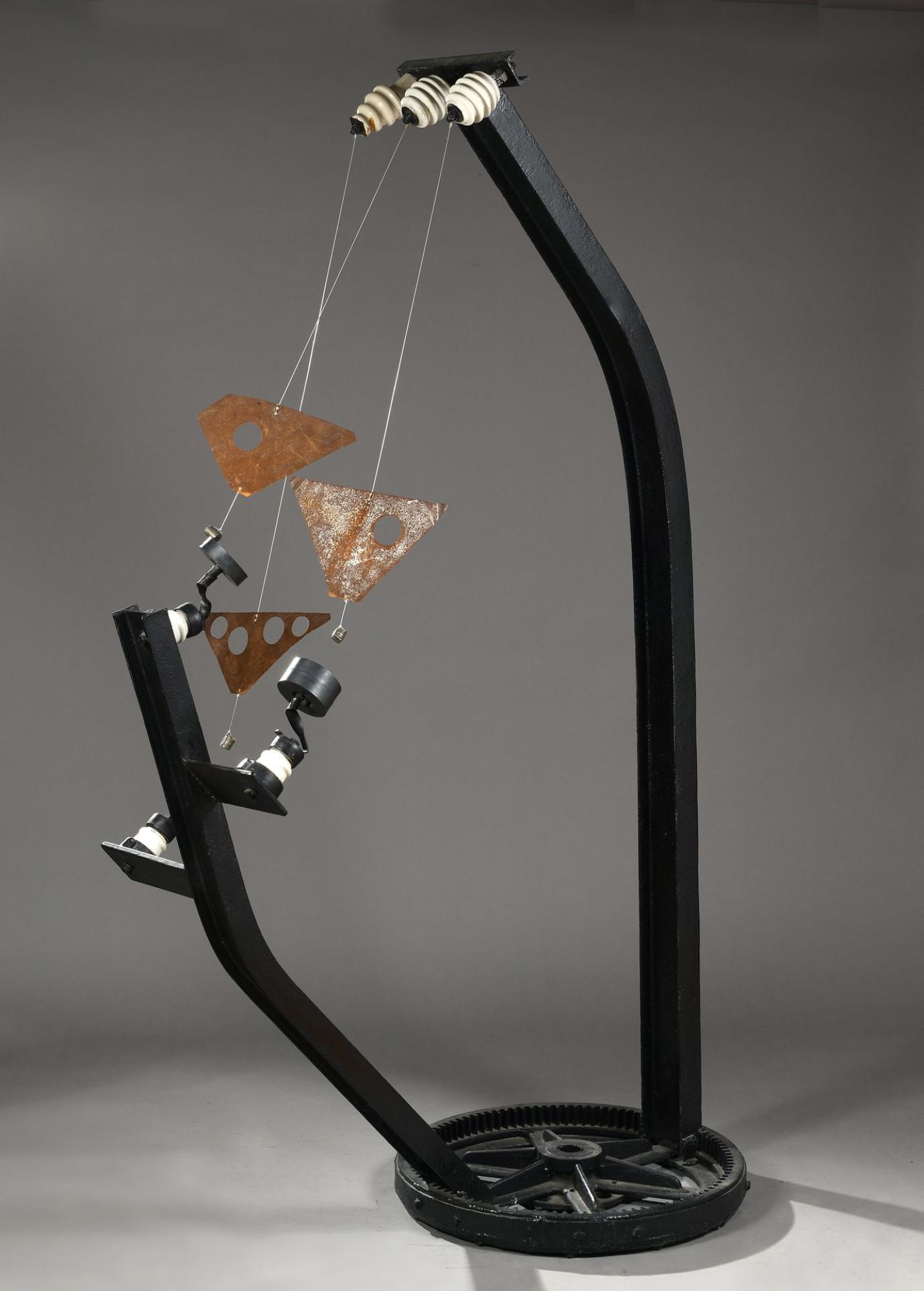 Vassilakis Takis, sculpture magnétique, 1988, fer peint, porcelaine et aimants, signée, 130x70 cm, crédit photographique : Crait+Müller. |