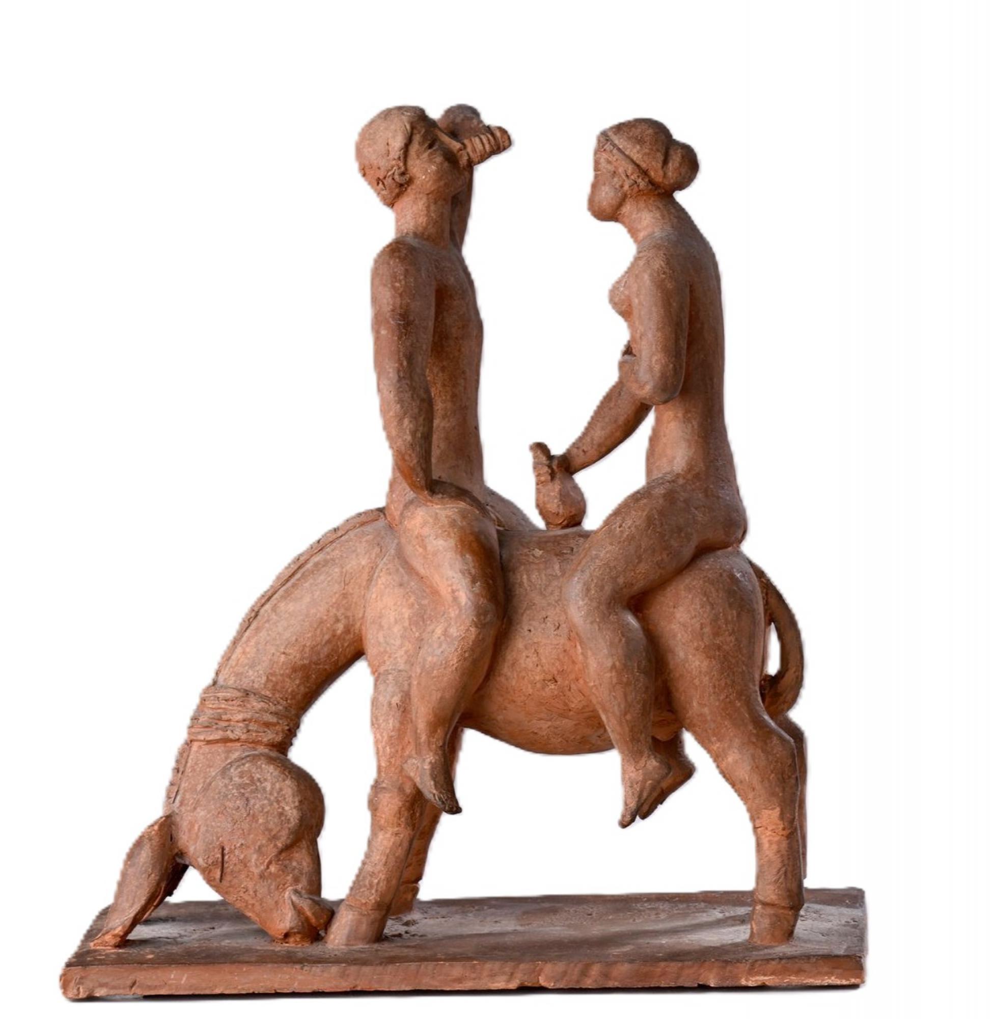 Il débute sa carrière artistique dans les années 1920, explorant un répertoire sculptural inspiré à la fois de l’Antiquité et de la vie quotidienne. Ses figures féminines, ses cavaliers et ses bustes traduisent une recherche constante d’équilibre, de mesure et de grâce. Contrairement à nombre de ses contemporains, Androusov travaille peu le bronze pour ses œuvres personnelles. Il privilégie la terre cuite, le plâtre, le bois, la pierre, des matériaux qu’il façonne avec une grande sensibilité.