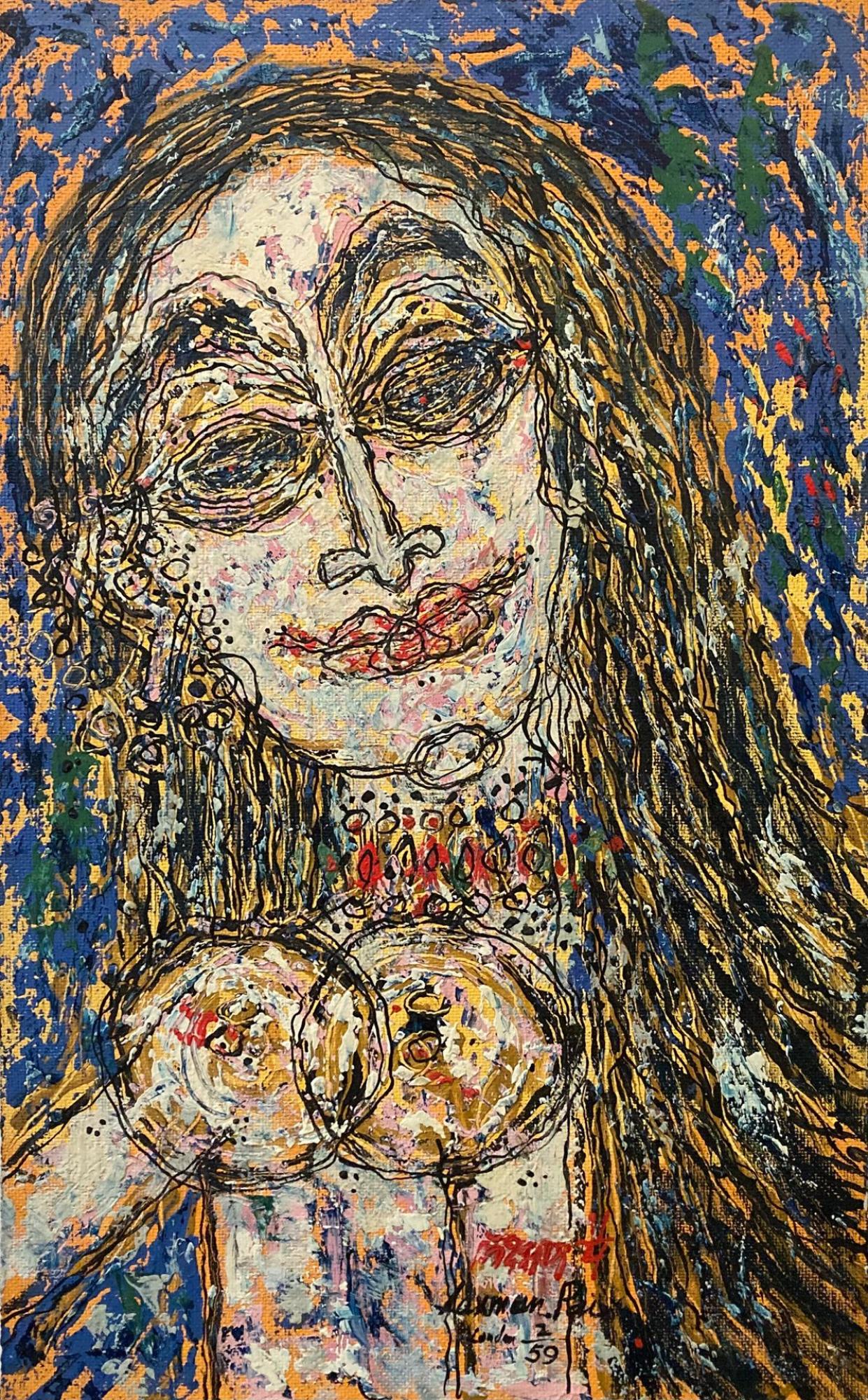 Laxman Pai, Portrait de femme, 1959, huile sur panneau, crédit photographique : Crait+Müller. |