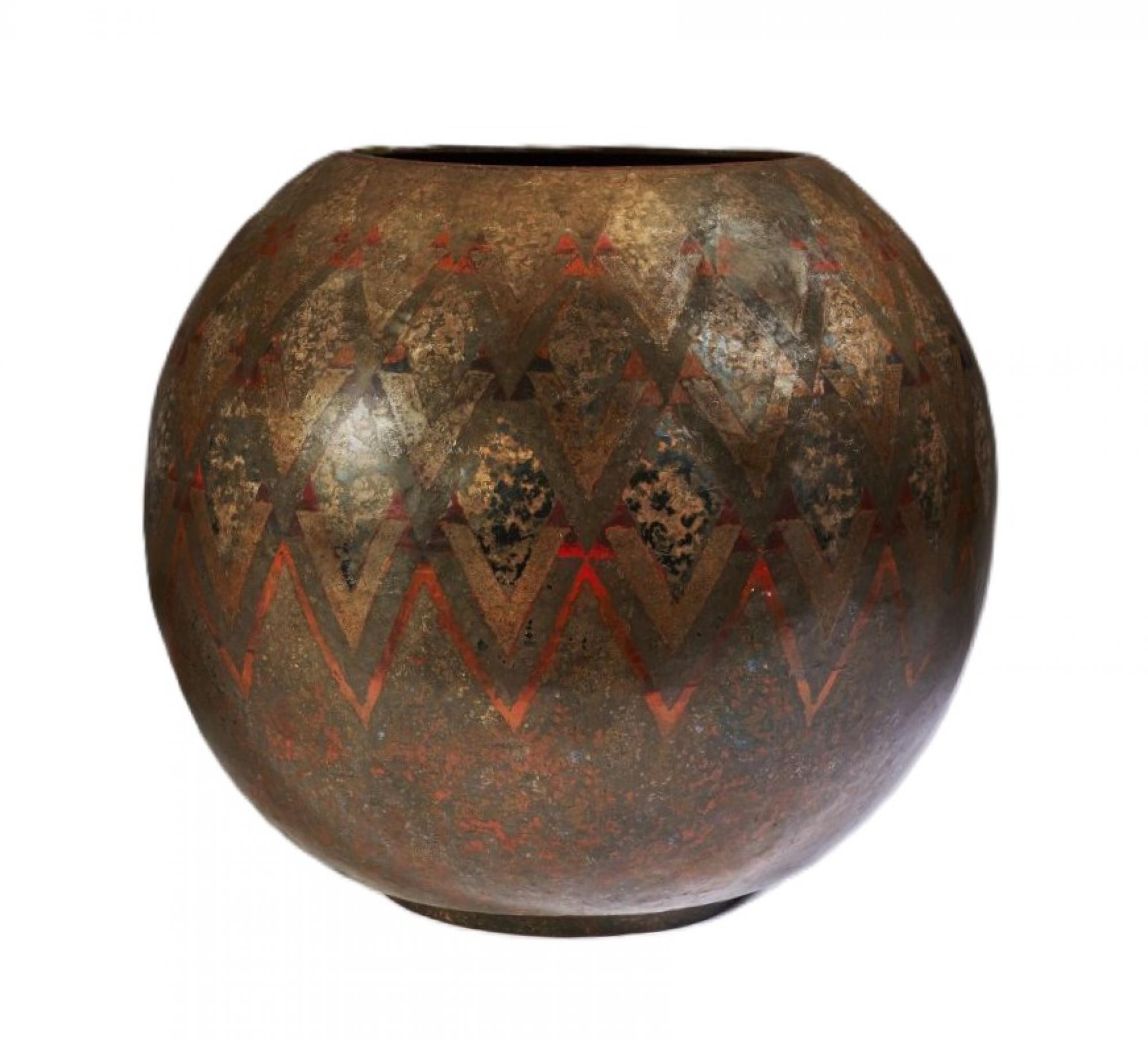 La dinanderie Art Déco, héritière des savoir-faire médiévaux, atteint son sommet dans les années 1920–1930 grâce à des figures comme Jean Dunand, Paul Follot, Armand-Albert Rateau ou Jean Després. Vases, plats, lampes, coffrets ou appliques sont façonnés dans des alliages de cuivre, laiton, bronze ou maillechort, martelés puis patinés, souvent décorés de motifs géométriques ou animaliers. Le martelage — à la fois structurel et décoratif — confère à chaque pièce une identité unique. Le moindre détail de finition (poinçon, assemblage, patine, soudure) peut attester de l’authenticité ou révéler une reproduction. C’est pourquoi l’expertise d’un objet en dinanderie nécessite une connaissance pointue de la production des artistes et des ateliers de l’époque.